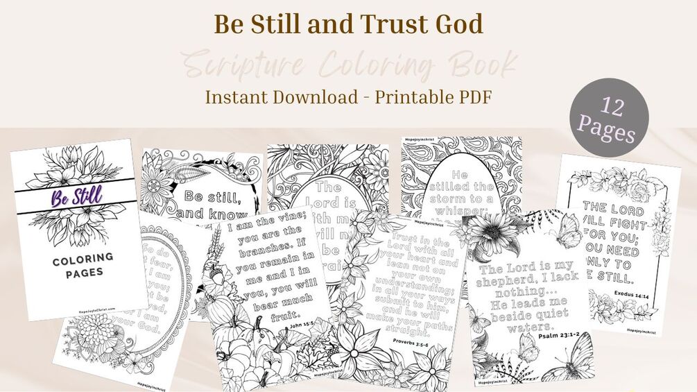 8 Scripture coloring pages (pulling the most powerful verses from the FREE 40 reading and devotional guide Be Still and Know God)